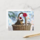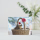 Photo of a squirrel wearing a Santa hat sitting in a basket with snow all around. The basket has a bright red Christmas bow. This cute squirrel picture is a fun way to celebrate the holiday season and can be easily customised with your own text on many different products for Christmas.