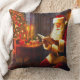 Santa Throw Pillow - St. Nick / Santa is sitting in a cosy holiday room reading by candlelight. The pillow has warm colours of deep red, golden tones, and off-white. Add this beautiful throw pillow to your Christmas decor to enjoy for years to come.