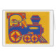 Santa Lives! Santa Train Christmas cards and other holiday gifts feature a unique Keller Kard creation of Santa riding in his blue and red train against a yellow, orange background and holding a flag with the words, Santa Lives. Decorate your home, your friend’s mailboxes or fill those boxes under the tree this holiday season with a vintage linoleum hand-cut block print design. Santa Lives! Prove it to your friends and family with our original Santa Train!