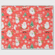 Santa Trees Snowflakes Red Christmas Wrapping Paper