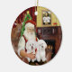 Santa relaxes in front of a cosy fire with his two Bichon Frise before the big night. (Notice Mona Lisa hanging over the mantel with the same two dogs.)