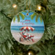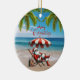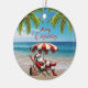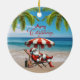 Santa under a Beach Umbrella Christmas Ceramic Ornament