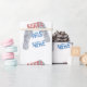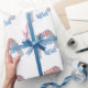 Santa Was Here pink and blue text and two in-toed footprints in the fresh snow. Funny Christmas Xmas prints, gifts and t-shirts for fun, humour and good mood