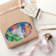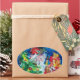 SANTA WITH CHRISTMAS TREE AND GIFTS OVAL STICKER