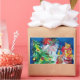 Colourful, whimsical and artistic acrylic painting with floral ornaments,winter plants, holly berries toys and baloons.