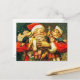 A beautiful vintage Christmas card featuring a charming Santa Claus, his arms full of dolls.