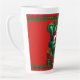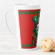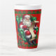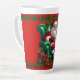 A Red And Green Latte Mug For Christmas Designed In A Plaid And Santa In Chair Checking His List