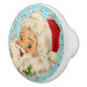 Sweet Vintage Santa design of a Jolly Santa Claus against a turquoise background with peppermints and candy canes.