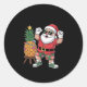 Santa With Pineapple Christmas Tree In Summer Time Classic Round Sticker