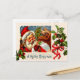 Another charming vintage Christmas card featuring Santa Claus feeding one of his reindeer with a candy cane.