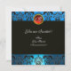 SANTA WITH VIOLIN ,BLUE BLACK DAMASK MONOGRAM Ruby Invitation