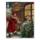 Santa and his bag of gifts have arrived in the middle of the Christmas celebration. The well-lit window shows the beautiful, sparkling tree and the happy family. This antique Christmas postcard is not frequently seen and delights with its vivid colours and nostalgic, old-fashion imagery. Deliver your holiday message with this festive illustration. It is perfect for cards, invitations, postcards, décor and any holiday gift.