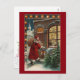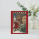 Santa and his bag of gifts have arrived in the middle of the Christmas celebration. The well-lit window shows the beautiful, sparkling tree and the happy family. This antique Christmas postcard is not frequently seen and delights with its vivid colours and nostalgic, old-fashion imagery. Deliver your holiday message with this festive illustration. It is perfect for cards, invitations, postcards, décor and any holiday gift.