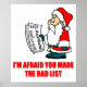 Image of Santa looking at his good/bad list while looking at you sideways. Under Santa it says "I'm afraid you made the bad list."