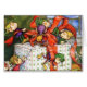 The front of this fun Holiday greeting card has a wonderful old image of Santa's busy elves frantically getting ready for Christmas. The mischievous little elves find themselves in all sorts of predicaments as they try to wrap a gift package. The inside of the card has two text fields for you to customise. Colourful and fun!