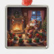 Santa's Christmas Eve Serenade: Cozy Fireplace Metal Ornament