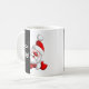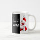 Suprised cartoon Santa peeking out from behind a wall. The word "Coco" is written in modern white font on a blackboard, with the words" For Me?" from Santa Claus.