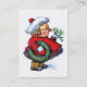 A charming vintage Christmas business card featuring a funny elf with a wreath and mistletoe, painted by the American illustrator Charles R. Twelvetrees.