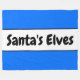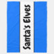 This fun Christmas holiday design features fun retro SANTA'S ELVES text inside a wide white centre stripe highlighted with black pinstripes on against festive bright blue outer stripes.