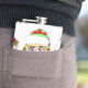 The flask itself is fine. It’s a cheap flask, obviously bought in bulk, however am prepared to overlook that. Given that it is a personalized item, I would have liked to have seen gift boxing instead of the generic packaging. Terrible printing, and/or quality. It’s a cheap, tacky vinyl. It is not cut straight and is also applied in a way that it is overhanging the bottom, causing the glue to catch on items and it will eventually roll and tear, damaging the wrap.