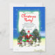 A cute children's Christmas party invitation with my original digital artwork of Santa Claus visiting a snowperson family to give them their Christmas gifts.