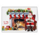 The front of this Christmas greeting card has an image of a beautiful Shetland Sheepdog who has found Santa Claus resting beside the blazing fireplace after delivering the family gifts. Santa holds one last package, and the dog looks expectantly at him. The text at the side says "For ME, Santa?" All the text, inside and out is customisable, so you may change it or add to it, if you'd like. See more Sheltie images, along with dozens of other dog breed products, at Dog Village.