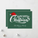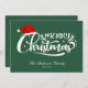 Santa's Hat green family name Christmas card design that features the words "Merry Christmas" in script style (editable colour). You can customise this card to enter your family name and year. You can also change the background colour if you like.