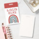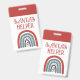 Santa's helper rainbow badge for holiday events or fairs. Red and white Santa ho, ho, ho.