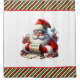 A Red And Green Striped Double Boarder With Santa Reading His List Christmas Shower Curtain