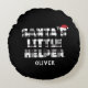 I gave this pillow along with a matching coffee mug (the wonderful advantage of using Zazzle) for a gift. I love being able to match 2 or 3 or more gifts with each other. Sometimes you don’t find the “perfect” present, but adding a little touch, just makes it. Add a matching: cup, purse, picture, hat, shirt, pillow, or tie. Your gift will fit in a bag, but be out of the box! Be remembered each time the gifted sees your present.. Fine. But I should have used a solid font on the back of the pillow (and maybe a darker color instead of white.....although the white looks super in front!)