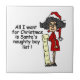 Funny holiday T-shirts, mugs, cards, stickers, buttons, bags, keychains, ornaments, and more sure to make anyone laugh features a female in a Santa hat and red dress with a long list saying "All I want for Christmas is Santa's naughty boy list!".