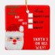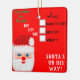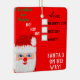 Fun Naughty and Nice Checklist for Santa. Santa's on his way is written next to jolly Santa Claus with red white hat against dark red background.