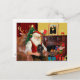 Santa at home with his black Toy Poodle, relaxing in front of the cosy fire before the big day. Notice Mona Lisa over the mantle holding the same dog.
