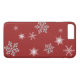 Illustrated sparkly snowflakes on a Christmas red background decorate this iPhone 7 case, making it the perfect holiday gift.
