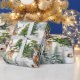 A watercolor-painted holiday wrapping paper featuring a red fox family foraging through the forest in a repeat pattern on white.