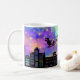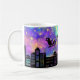 Santa's Sleigh and Reindeer Flying Over a City Coffee Mug