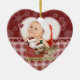 Our Santa's Sleigh heart shaped keepsake photo ornament is just too cute! It features two reindeer pulling a sleigh with zoo animal Santa and elf on a red snowflake and plaid background. You can add your own photo and text to the back of the ornament before ordering.