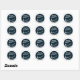 This elegant blue Christmas round sticker features the silhouette of Santa's sleigh with his reindeers, flying above the houses in a trail of stars.