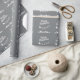 This elegant silver-grey Christmas wrapping paper features the silhouette of Santa's sleigh with his reindeers, flying above the houses in a trail of stars.