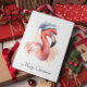 Send warm wishes with a personalised splash of unique holiday cheer this season with our "Santa's Snowbird Flamingo" customisable Christmas card! This vibrant card features a charming design of a cheerful flamingo, perfectly dressed for a warm-weather Christmas with a festive hat, embodying the spirit of a holiday "snowbird." It's the perfect blend of tropical whimsy and classic Christmas spirit, sure to bring smiles to friends and family near and far.