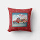 Santa's Vintage Camper Christmas Throw Pillow features the big man himself cruisin' in a classic 1950s two-tone coupe pulling a vintage Shasta camper.
