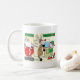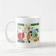 Cartoon character Santa observing water cooler gossip between his reindeer and elf in his workshop. Enjoy your favourite yuletide beverage with this cute and humourous holiday themed coffee mug, featuring the original cartoon character art of Marty Qatani