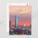 Santiago Chile Illustration Travel Art Vintage Postcard