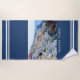 70” x 35” blue beach towel of the Greek island of Santorini, classically Thera and officially Thira. White double stripe borders. Santorini is an island in the southern Aegean Sea, about 200 km (120 mi) southeast of Greece's mainland. It is the largest island of a small, circular archipelago which bears the same name and is the remnant of a volcanic caldera. See the entire Greece Beach Towel collection in the HOME section.
