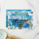 Santorini blue floral wedding save the date card