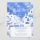A modern watercolor painting of the picturesque town of Oia on the Greek island of Santorini to celebrate with a touch of elegance and beauty. Inspired by the stunning vistas of the island, these invitations feature a mesmerising watercolor painting of Oia in dreamy blue and white hues. Original art by Nic Squirrell.