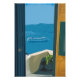 Digitally altered photo of a cruise ship in the caldera, taken through a doorway in Thira on the island of Santorini, Greece