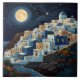 Santorini, Greece Full Moon Night Greek Village Ceramic Tile