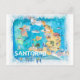 Santorini Greece Illustrated Map with Main Roads Postcard