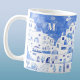 Watercolor blue and white townscape painting based on the Greek island of Santorini. Original art by Nic Squirrell. Change the monogram initial to personalise.